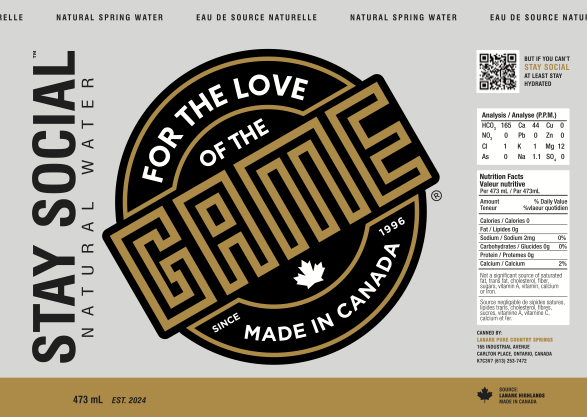 Sourced from Lanark Pure Country Springs, Stay Social Water is natural spring water at its finest. Every can is filled with crisp, refreshing hydration straight from Ontario, ensuring premium quality and a smooth, clean taste.